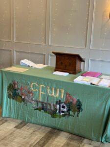 Karen Monks, our Federation Secretary supported the day and was thanked by Selina for her help and support organising the event. Both Selina Prescott, Cheshire Federation Chair and Ann Beckett, Cheshire Honorary Treasurer had the opportunity to give their remarks and present the Trustee Report and Accounts for 2023. Trustees Wendy Morris, Ann Pye and Vivien Lee presented information on the WI Learning Hub, the MCS and hints and tips to support the Presidents role. Susan leicester led the members singing Jerusalem and the National Anthem. All the Trustees and WI Advisers supported the event throughout the day.